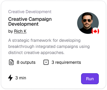Every workflow is created by a member of our Hi5 Experts Community. This group of curated and award winning experts includes top researchers, strategists, creative directors, and specialist creatives.