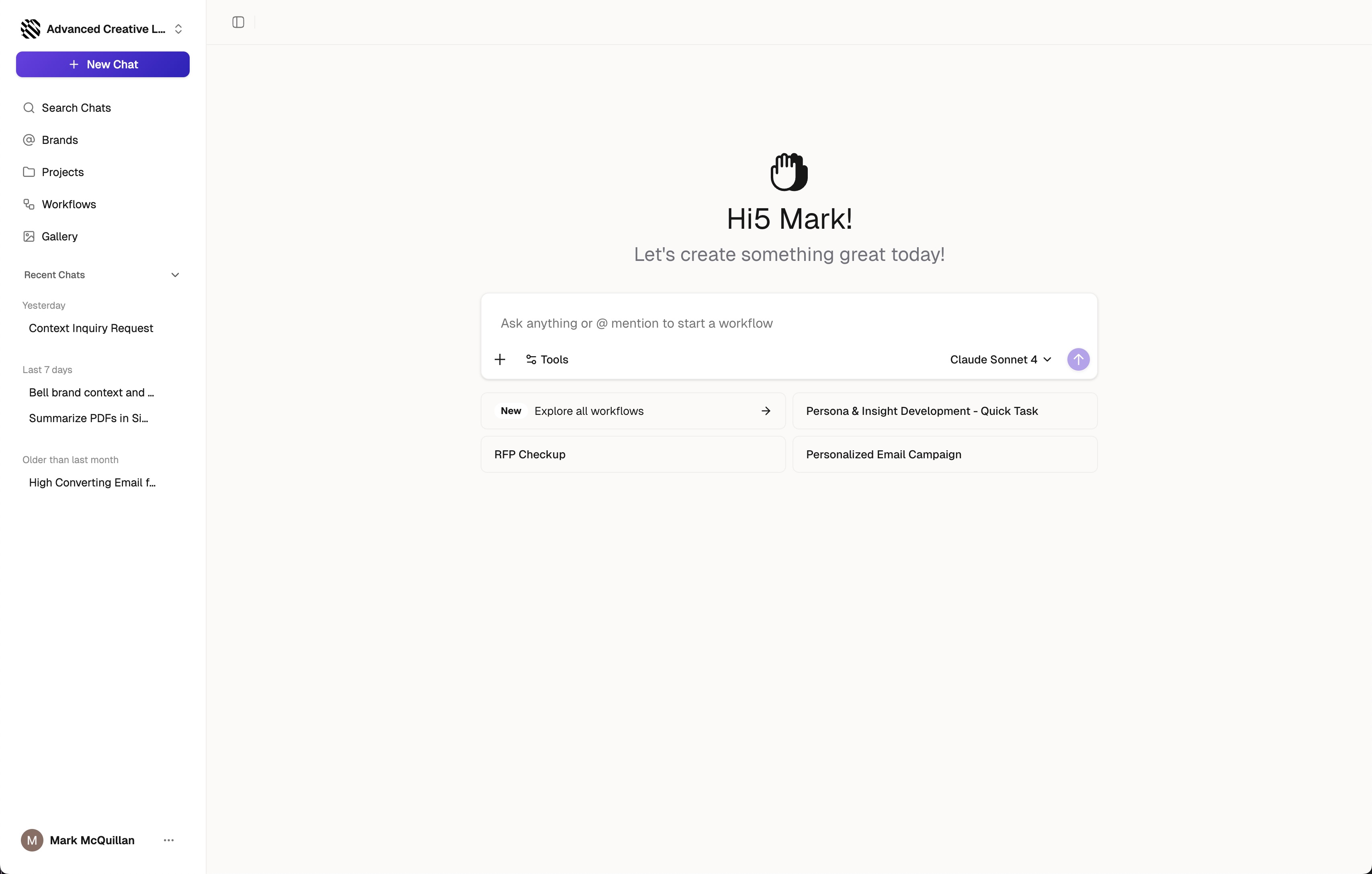 Each Hi5 workflow was crafted by a real marketing professional in collaboration with Advanced Creative Labs, infusing the world's most powerful AI models with leading industry insight.